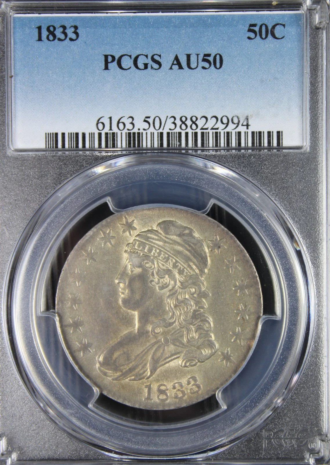 1833 AU50 Capped Bust Half Dollar, PCGS 38822994