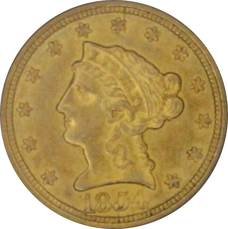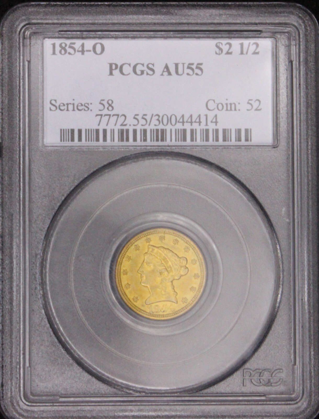 1854-O AU55 Liberty Head Quarter Eagle , PCGS 30044414