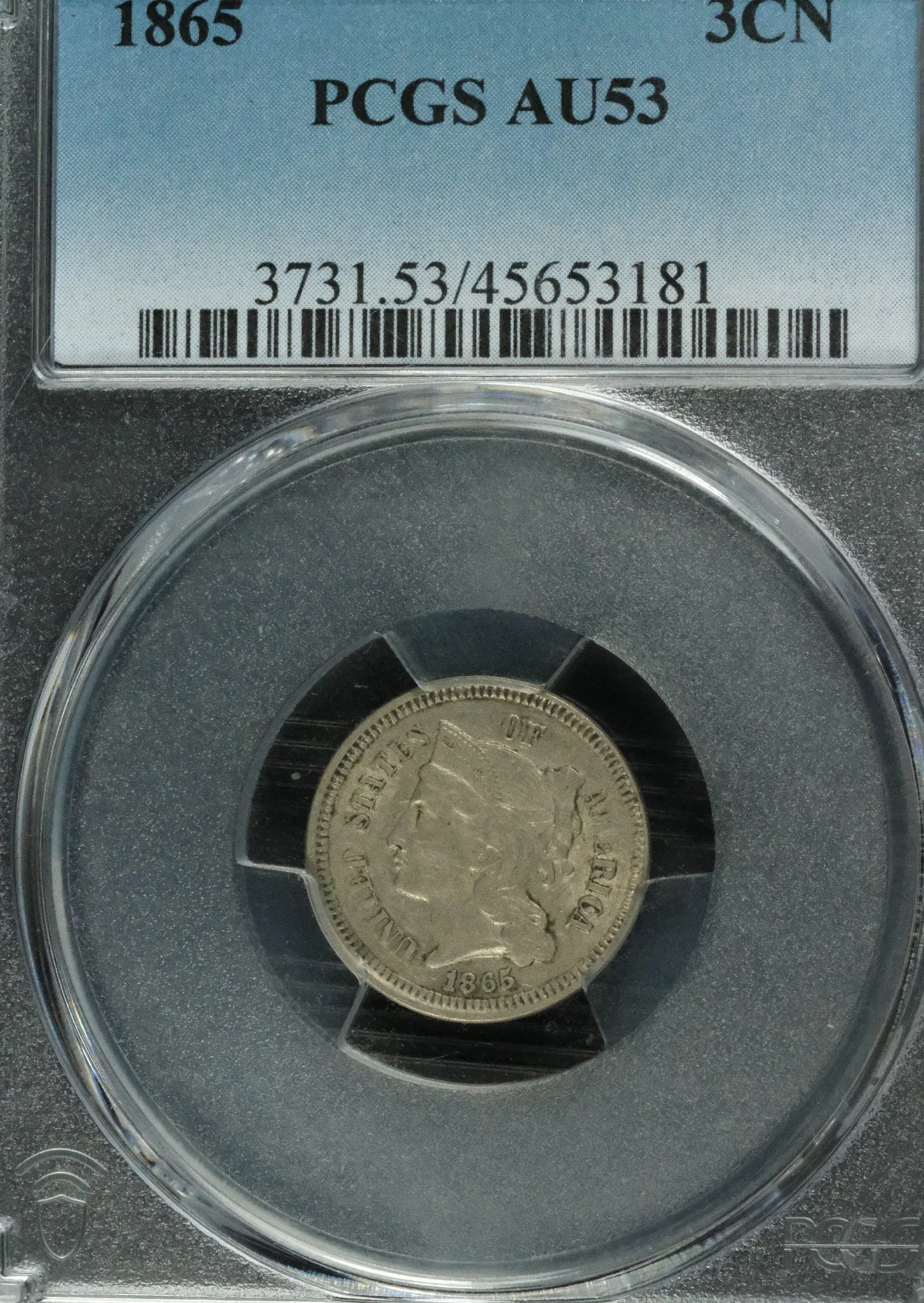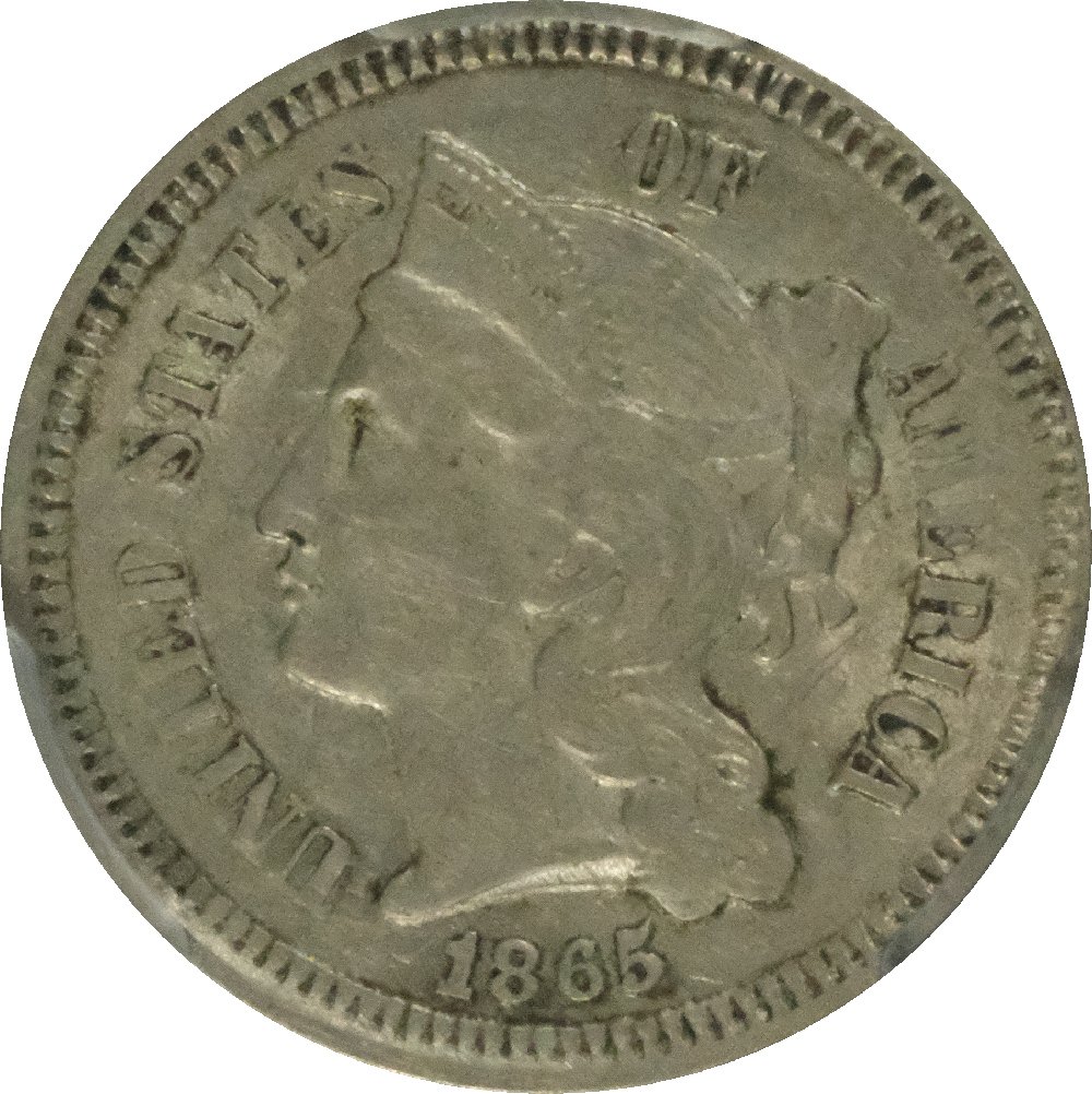 1865 AU53 3 Cent Nickle PCGS 45653181