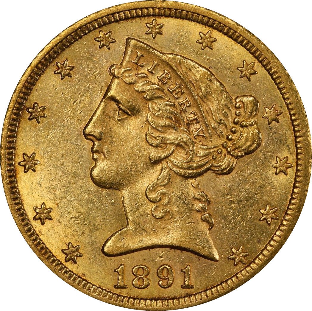 1891-CC MS61 Liberty Head Half Eagle , PCGS 50555007