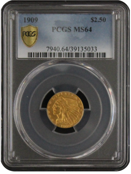 1909 MS64 Indian Quarter Eagle, PCGS 39135033, Gold Shield