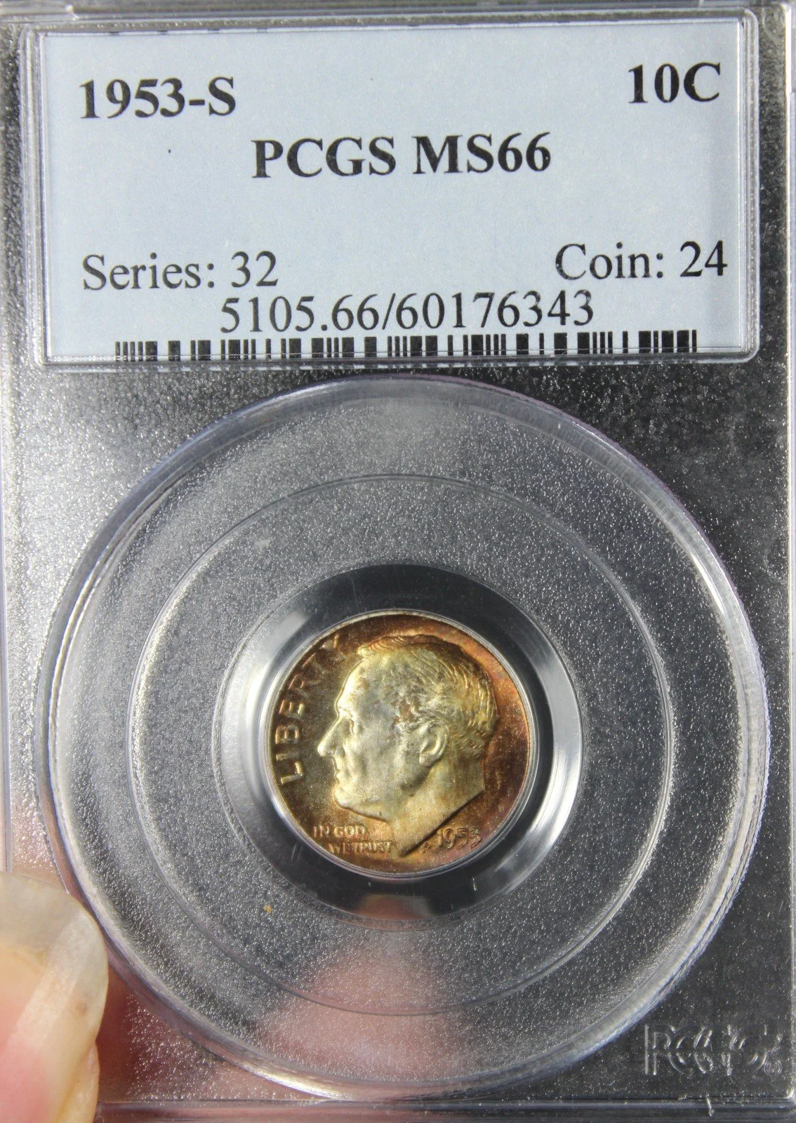 1953-S MS66 Roosevelt Dime, PCGS 60176343