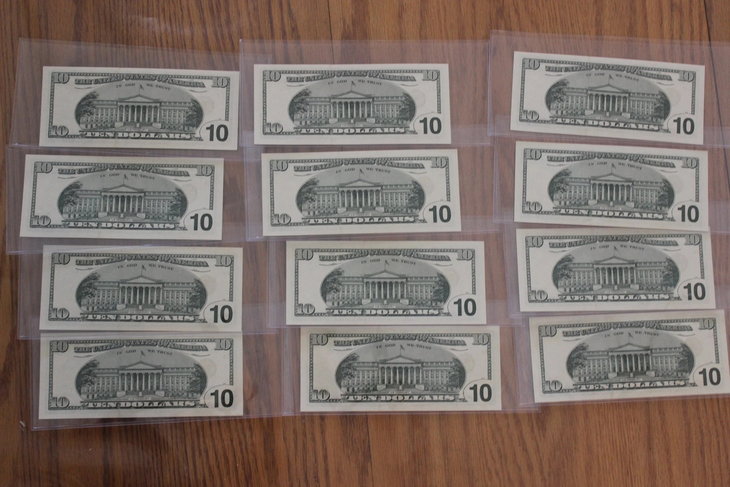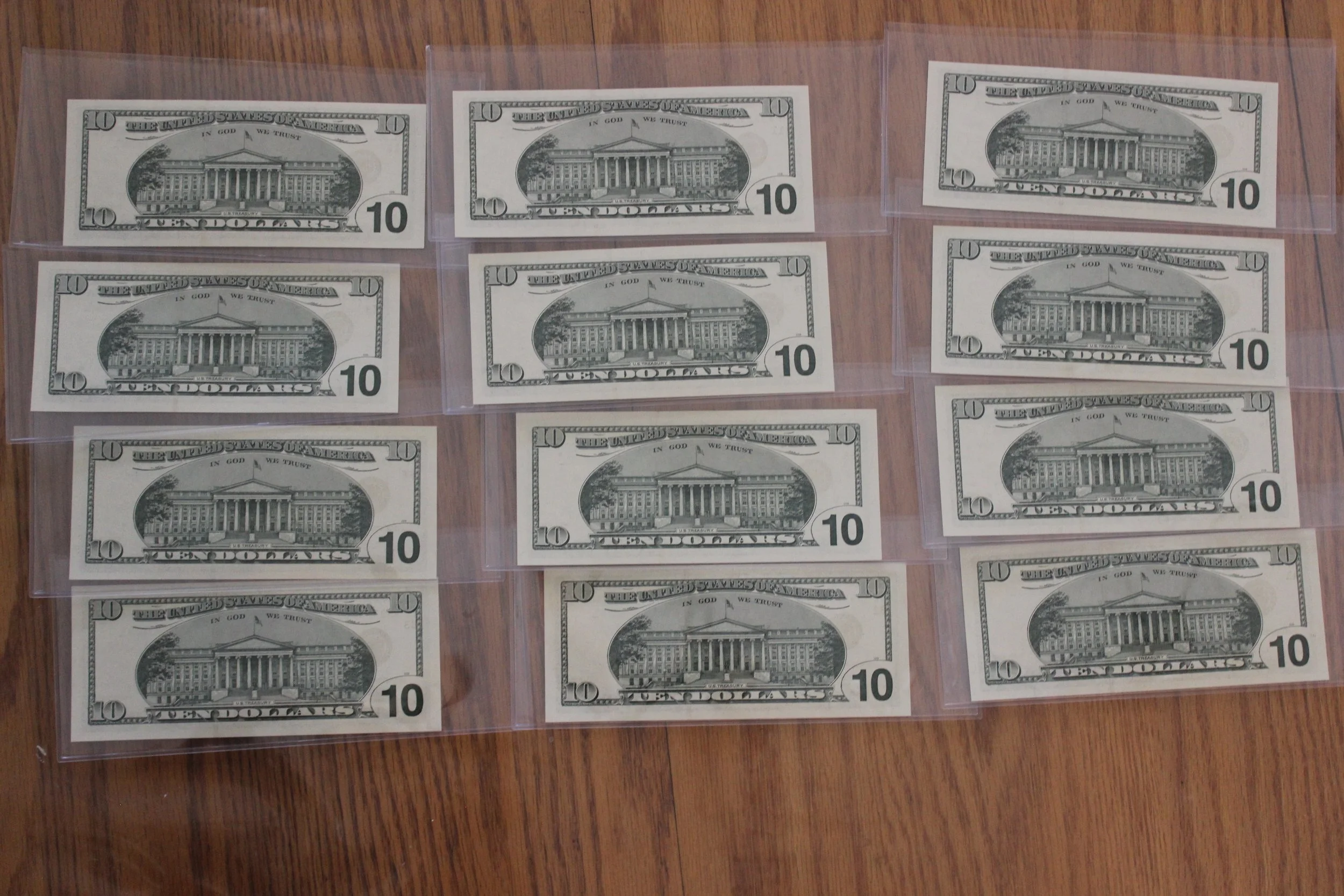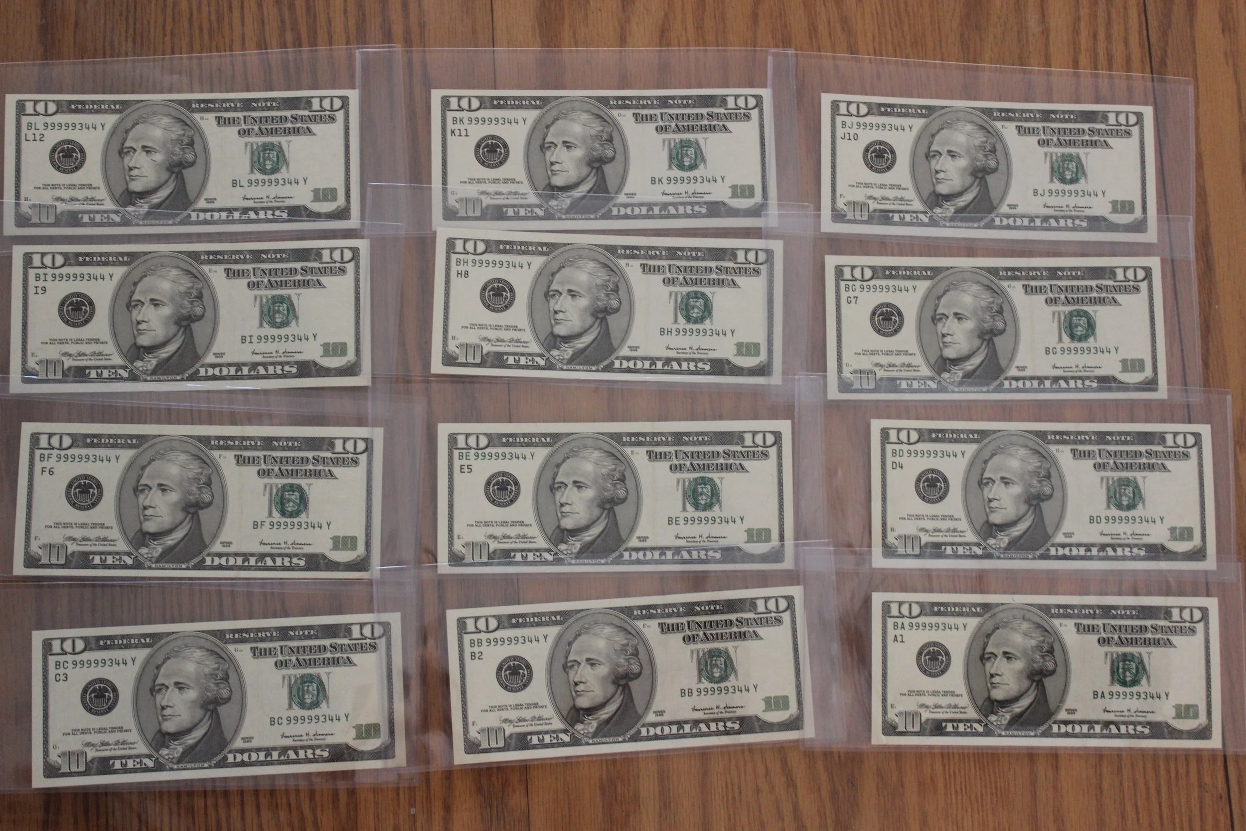1999 Crisp, CU Ten Dollar FRNs, Matching Serial Numbers, All 12 Federal Reserve Banks
